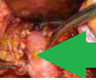 Completion of the pancreaticogastric anastomosis – Green arrow – demonstrates the pancreas secured within the gastric lumen (Courtesy Dr. V. Penopoulos)