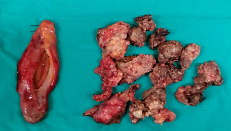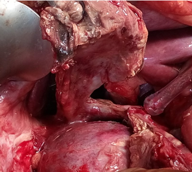 Total Hysterectomy specimen .Both ovaries occupied by the signet cell gallbladder carcinoma (Courtesy Dr. V. Penopoulos)