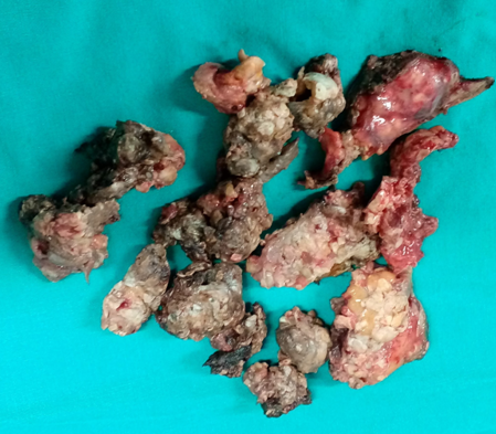 Figure 2 . Macroscopic view of the tumor – cut surface . ( Courtesy Dr . V. Penopoulos ) .